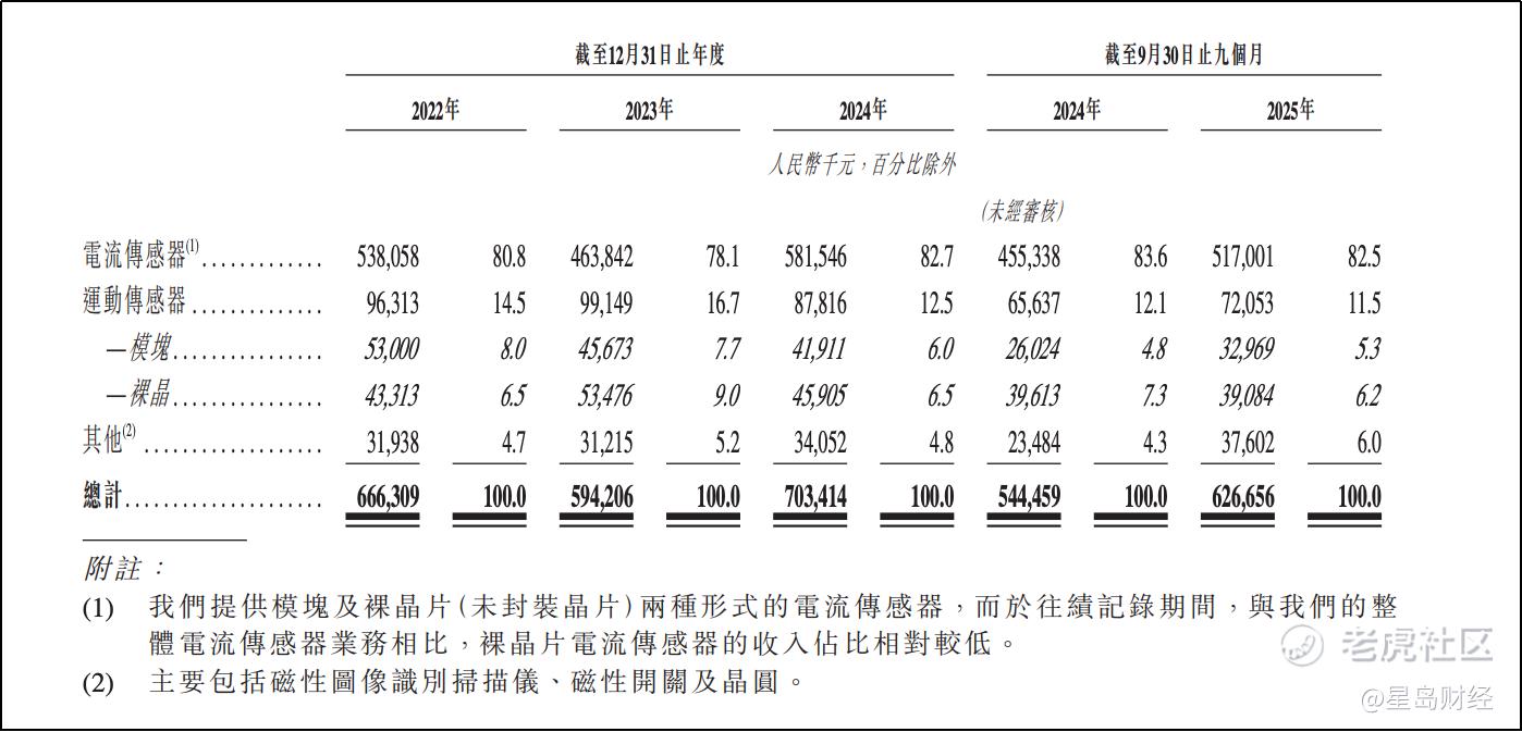 希磁科技称,公司已全面掌握所有主流磁传感技术,并建立涵盖霍尔效应技术及全系列xMR技术的全路径技术组合。从产品来看,电流传感器收入占比连续三年超80%,是公司主要产品。2022年至2024年及2025年三季度,电流传感器各期收入分别为5.38亿元、4.64亿元、5.82亿元和5.17亿元。根据弗若斯特沙利文的资料,2024年,希磁科技生产的电流传感器产品在全球排名第三,市场份额为3.4%。