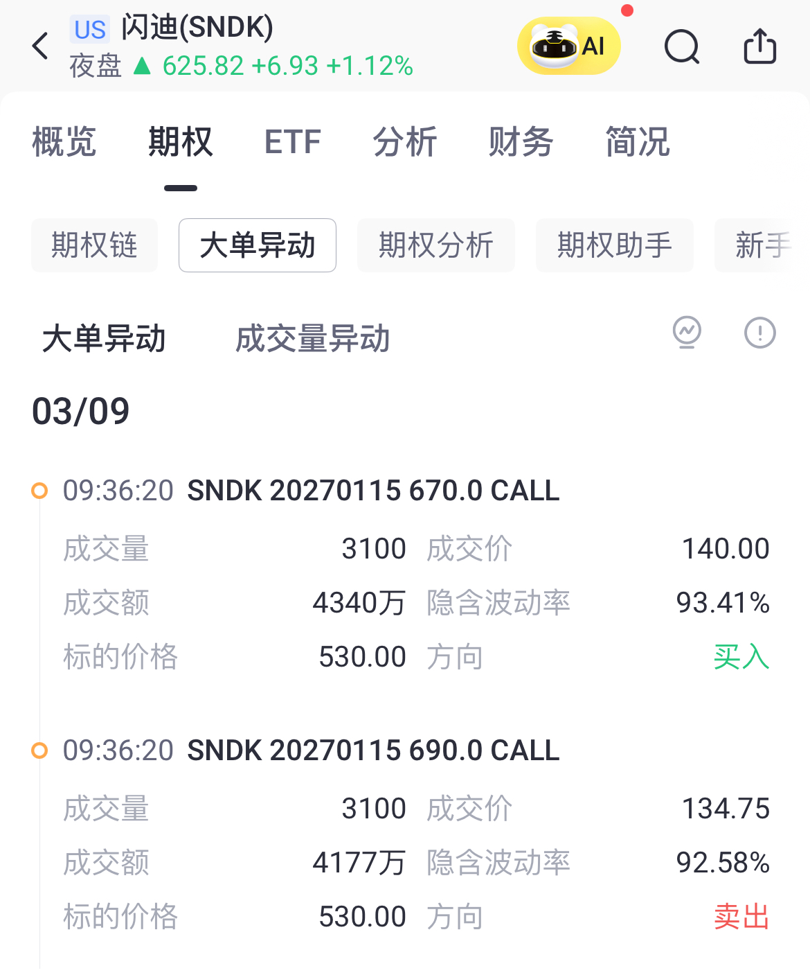 期权聚焦 | 远月期权现闪迪牛市价差大单,押注670-690美元区间;600美元Put OI揭示市场心理关口