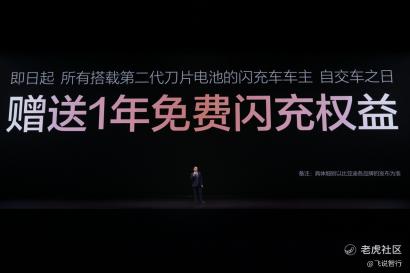 发布会现场,王传福还宣布:所有搭载第二代刀片电池的闪充车车主,均享有重磅“闪充权益”,自交车之日起,在全国闪充站可享受1年的免费闪充权益,让闪充体验更畅快。并且,在闪充免费期结束后,也会同行业保持一致,不会额外收费。