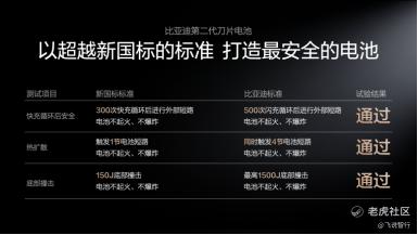 第二代刀片电池继续将安全进行到底,通过一系列超越新国标的安全测试,为用户打造最安全的电池,确保电池全生命周期都安全,彻底打消用户的安全顾虑。