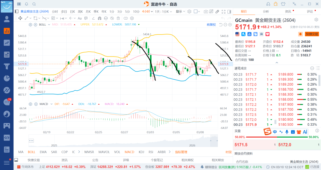 26-3-6 贵金属之黄金震荡反弹5200附近继续网格空(4)