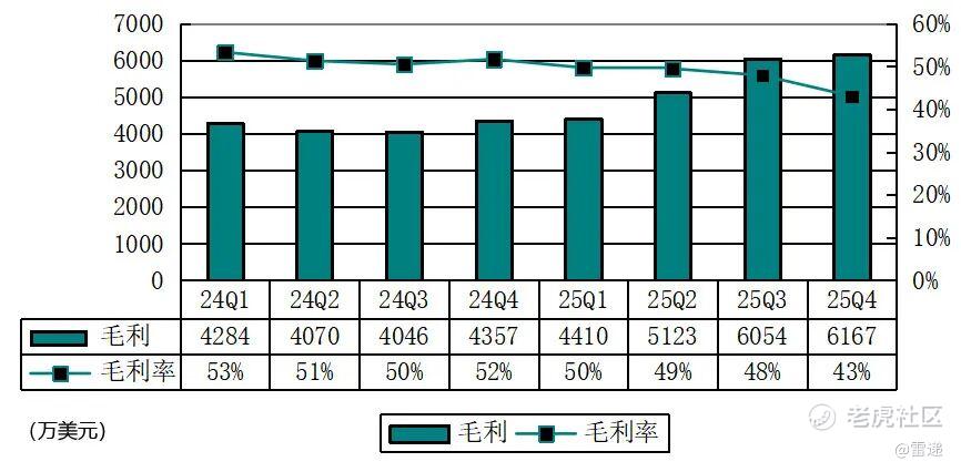 迅雷2025年第四季毛利6170万美元,较上年同期的4357万美元增长43%;毛利率43%,较上年同期的51.7%下降8.7个百分点。