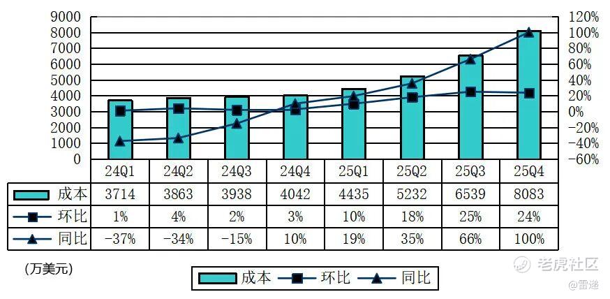 迅雷2025年第四季成本8080万美元,较上年同期的4040万美元增长100%。