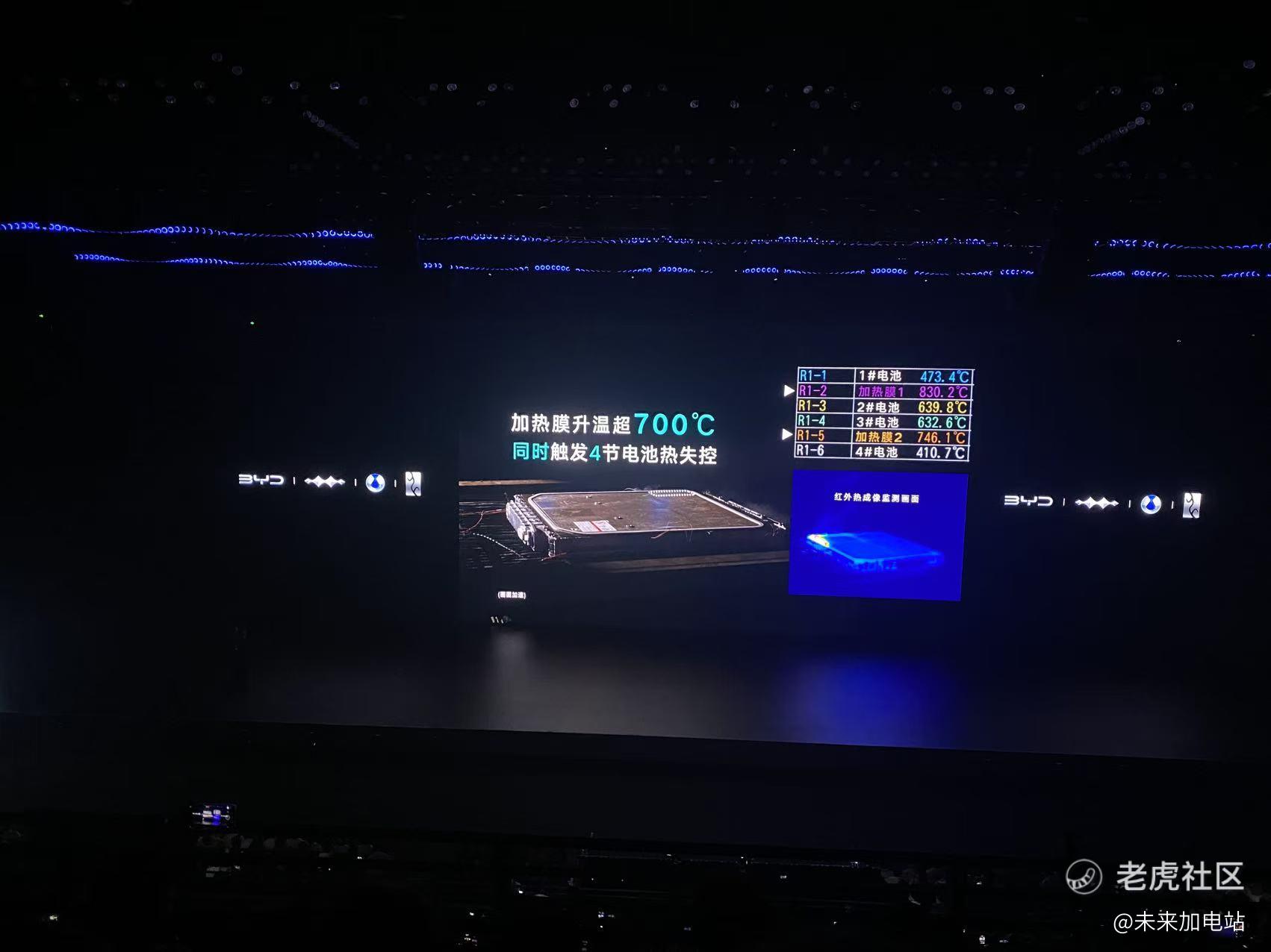 其中后两个实验,就是纯粹的安全实验。 先说热扩散实验:新国标要求,电池包因内部短路引发热失控后,不起火、不爆炸。新国标标准是触发1节电池热失控,而第二代刀片电池挑战同时触发4节电池短路,周围的电芯依然保持正常温度,没有引起热扩散,没有起火、没有爆炸。
