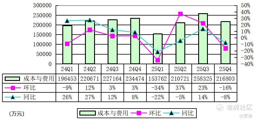 满帮2025年第四季度成本与费用为21.68亿元,较上年同期的23.45亿元下降8%。
