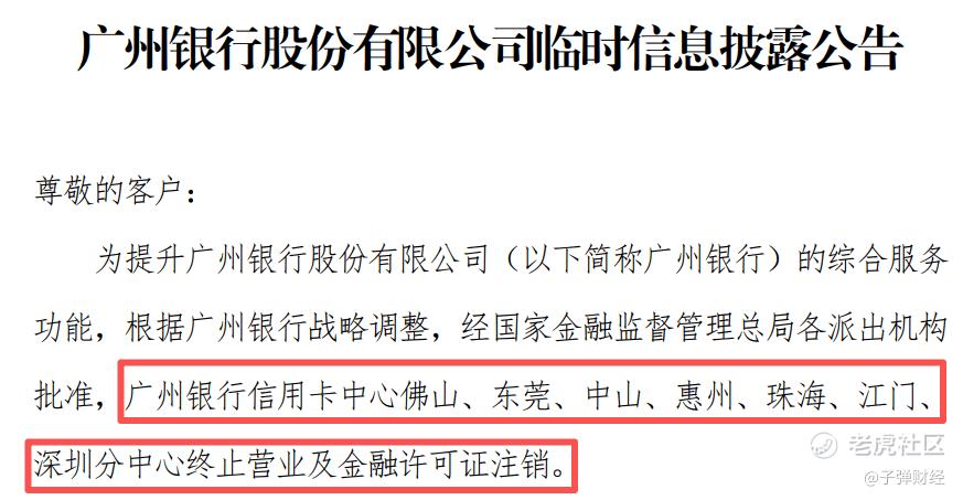 2026年1月29日,广州银行官网发布公告称,根据金融监管总局批复结果,该行信用卡中心江门、深圳和中山等七个分中心终止营业。