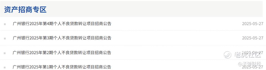 更为关键的是,银登网在2025年5月末披露的信息显示,广州银行一日连发了4项个人不良贷款转让项目招商公告,均属于个人信用卡不良贷款。