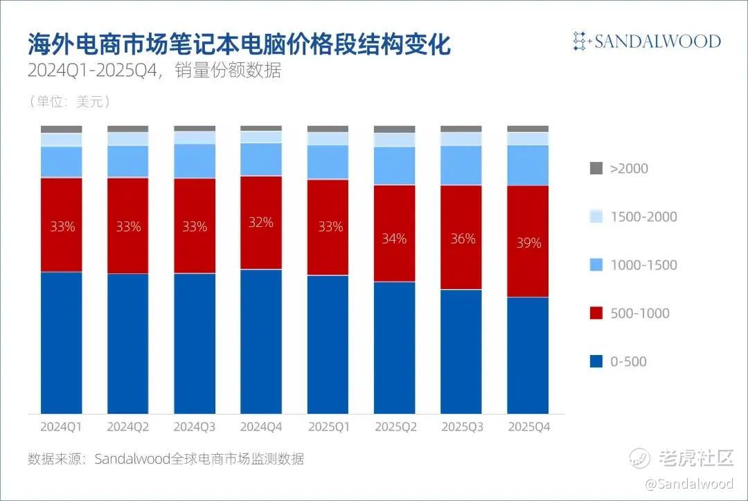 根据Sandalwood全球电商监测数据显示,2025 年海外电商渠道笔记本电脑销量同比增长 55%。