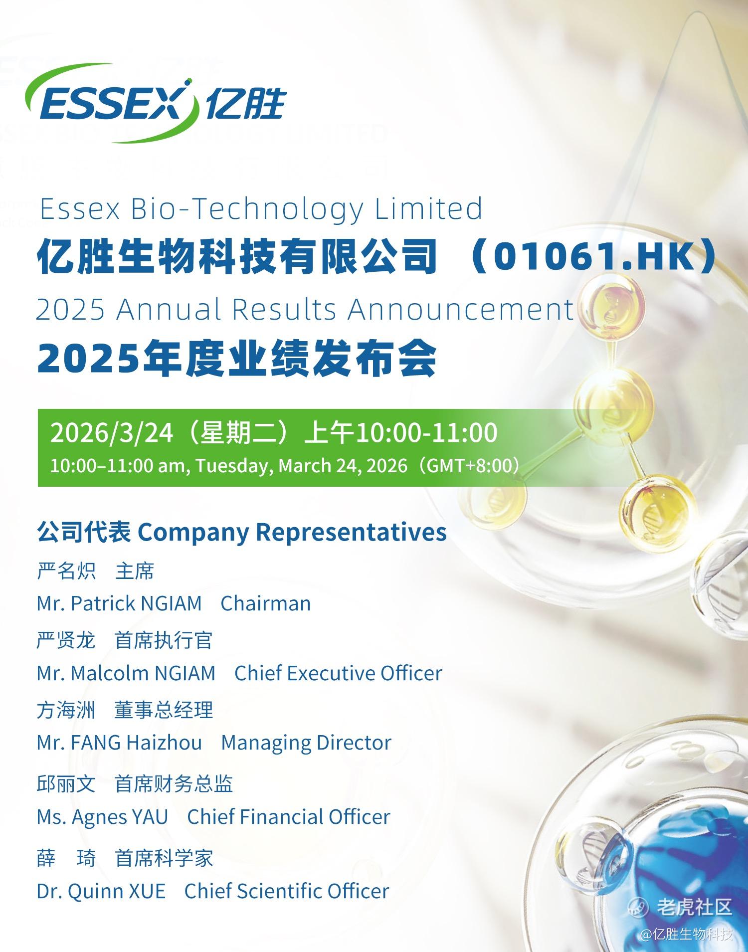 【邀请函】亿胜生物科技(01061.HK)2025年度业绩发布会