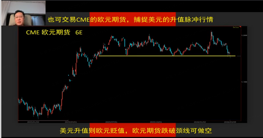 本章节主要讨论原油涨价后的交易机会,重点提及美元指数。今年美元指数可能出现脉冲式行情,油价飙升推动通胀预期抬升,或使美联储降息预期反转,引发美元指数快速上涨。可通过交易CME欧元期货参与,若预期美元升值,欧元可能快速下跌,跌破颈线或有快速波动,值得关注。