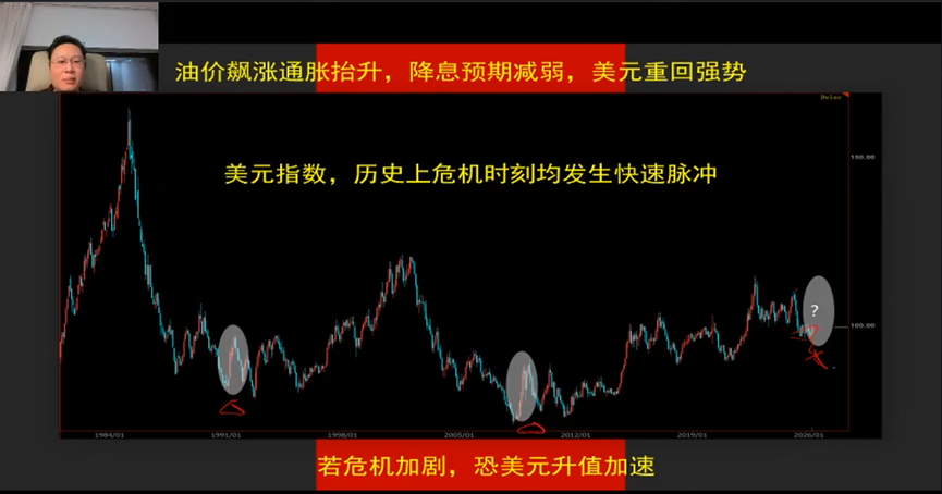 升值预期:油价飙升推动通胀预期抬升,可能使美联储改变降息预期,导致美元流动性欠缺,引发美元指数快速上涨。目前美元指数已从底部反弹,与油价波动相关。