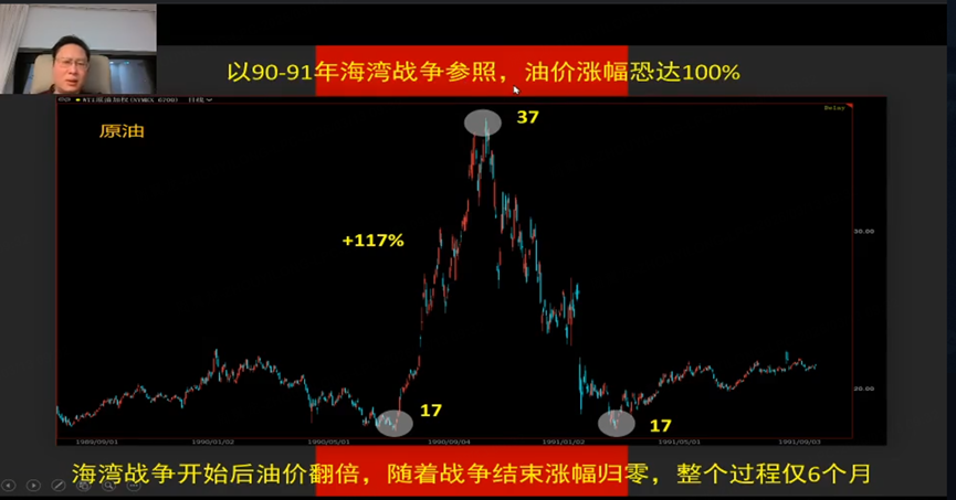 历史行情参照:当前原油价格走势可参照 1990 - 1991 年海湾战争,当时原油价格在三个月内从 17 美元/桶涨至 37 美元/桶,涨幅一倍。若霍尔木兹海峡谈妥解封,油价可能出现类似快速回调。