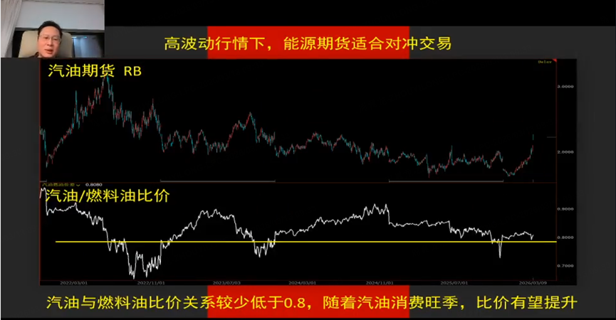 本章节主要讨论原油价格行情,指出供应端问题会使油价上涨,如伊朗事件类似1990 - 1991年海湾战争,当时油价三月翻倍,后随战争结束大跌。当前封锁霍尔木兹海峡使油价上涨,若谈妥开放,油价或重演类似波动。建议做多可选6月合约,做空较难,后续会跟踪具体策略,临近6月油价或再挑战100美金。