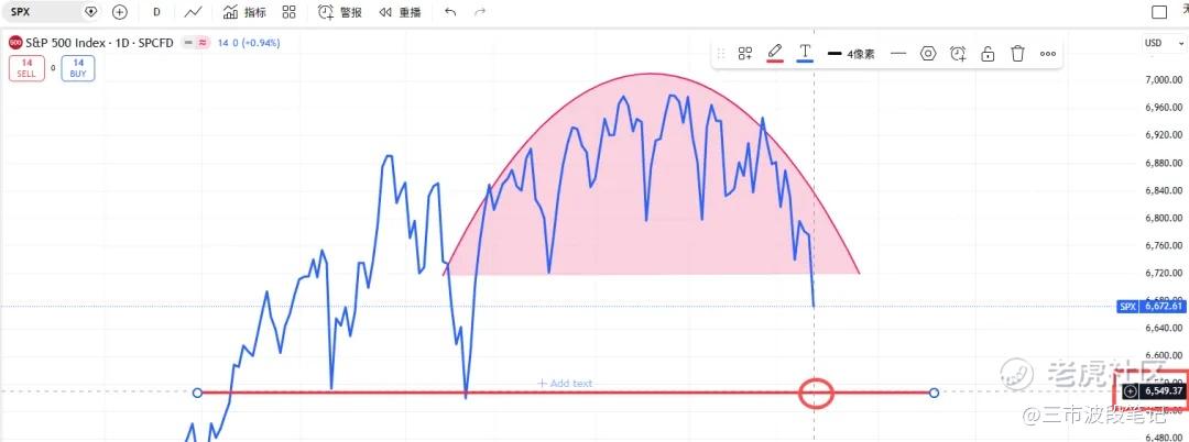 这个我们跟踪了许久的技术图形,终于找到了出路,但这一次可能是SPX到6500的位置(最乐观预估)。
