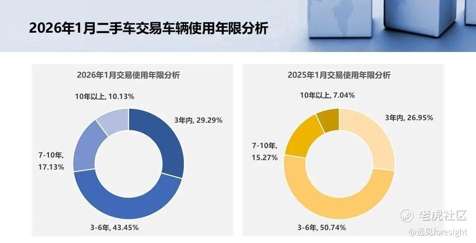 一直以来,3-6年车龄都是咱们展厅里的绝对C位,但今年1月,这个区间的占比降到了43.45%,同比下降了7.29个百分点 。那么,买家都去哪儿了?