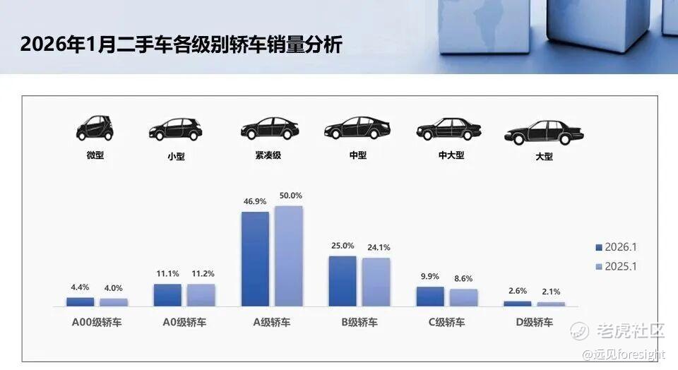 在车型级别上,这种“少花钱办大事”的心态更明显了。虽然A级车依然是大头(占46.9%),但同比下降了3.1个百分点 。反而是B级(25%,涨0.9%)、C级(9.9%,涨1.3%)、甚至D级车(2.6%,涨0.5%)都在涨 。