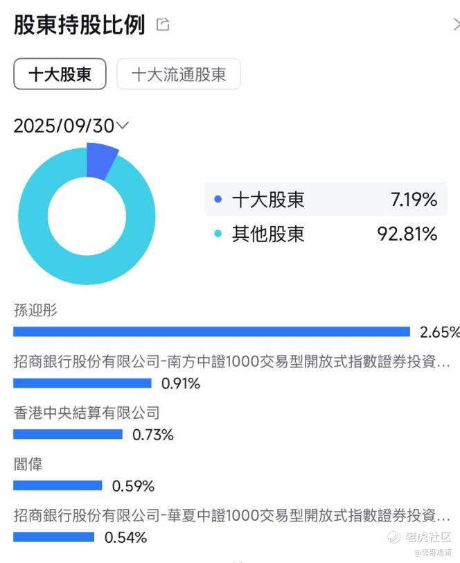 再看一眼A股的十大股东,有点吓人,十大股东持股比例不到10%......