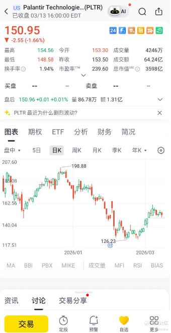 这家由Peter Thiel联合创立的公司,已经从早期服务于CIA的情报分析工具,进化为横跨国防、商业、医疗、金融的数字化基础设施提供商。截至2026年3月,Palantir的市值已突破3000亿美元,股价在过去三年累计涨幅超过2700%,成为AI时代最具争议也最受追捧的标的之一。