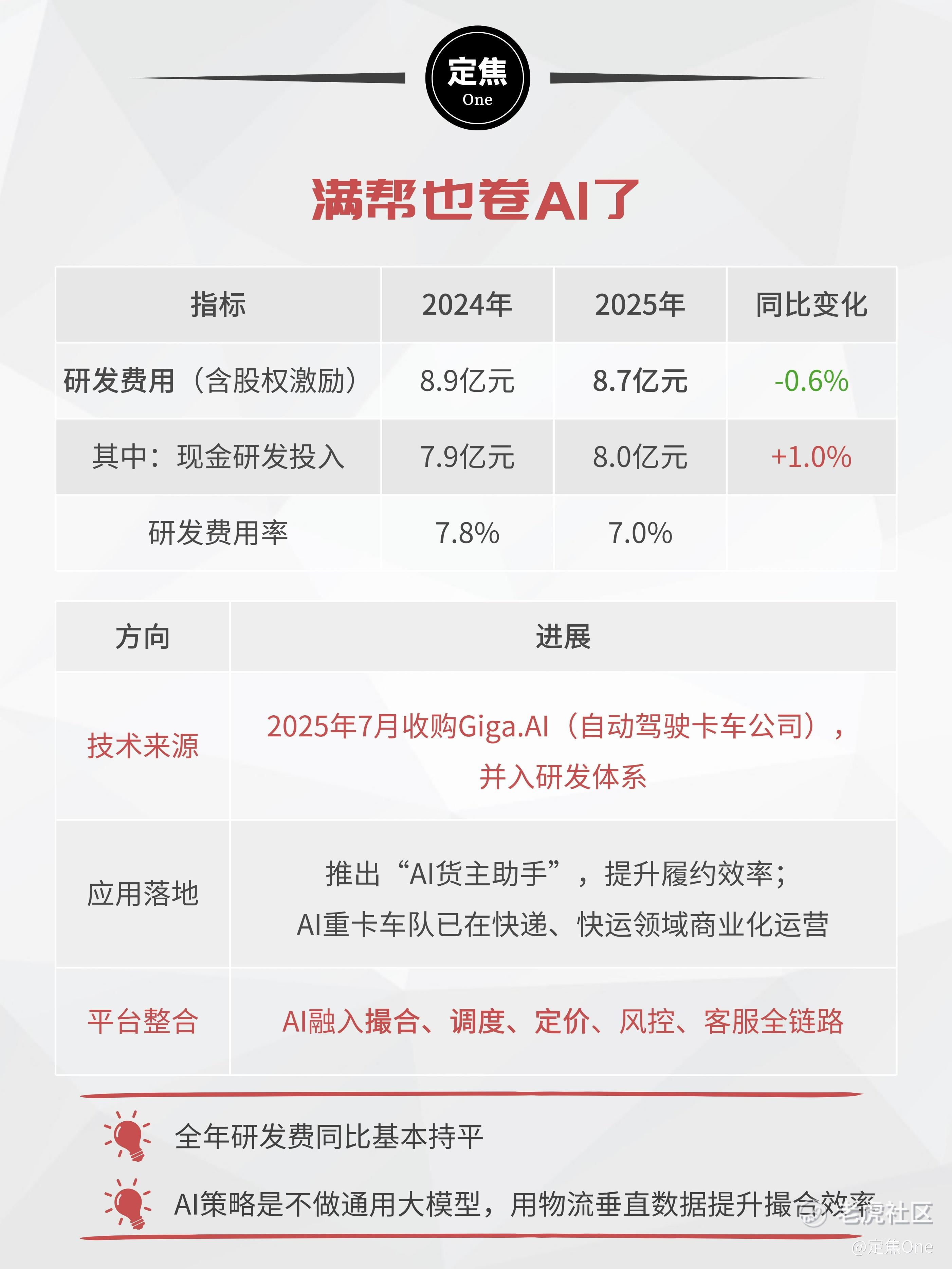 总体来看,满帮主动砍掉了低质量收入,换取更健康的盈利结构;信贷业务的风险需要持续观察;AI的价值还需观察。