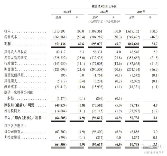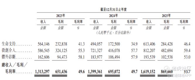 A面在于经营效率提升驱动盈利拐点。从收入质量看,2023年至2025年,公司营收由13.13亿元增至16.19亿元,2025年同比增长15.71%,增速较上年提升5.6个百分点。更具指标意义的是毛利率的持续优化——同期毛利率由49.6%稳步攀升至53.7%,累计提升4.1个百分点。这一增幅远超单纯收入扩张所能解释的范围,表明产品结构向高附加值领域倾斜(如微创介入耗材占比提升)以及供应链整合带来的成本红利正在释放。