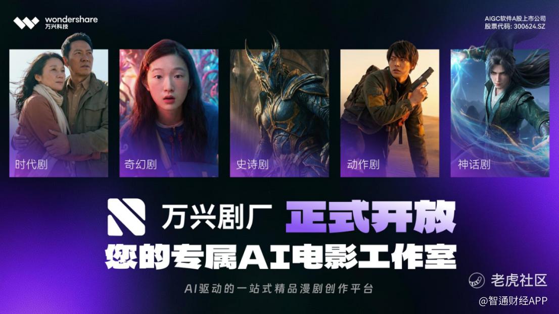 2026年1月29日,在宣布战略投资灵漫快创的当天,万兴科技还宣布推出AI驱动的一站式精品漫剧创作平台万兴剧厂,并开启限量公测。该平台致力于打造"您的专属AI电影工作室",面向AI剧制作公司、AI影视工作室及高校/影视培训机构提供一站式AI创作解决方案。