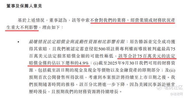 在MiniMax的招股书中,其保荐人和律所对公司潜在的版权诉讼用了极大篇幅,进行了极度详尽的风险披露,甚至测算了败诉可能面临的最高赔偿金额。结论是:“不会对业务、经营业绩或财务状况产生重大不利影响”,且测算高达7500万美元的最高赔偿金额,仅占自身IPO后持有资金的4.9%。
