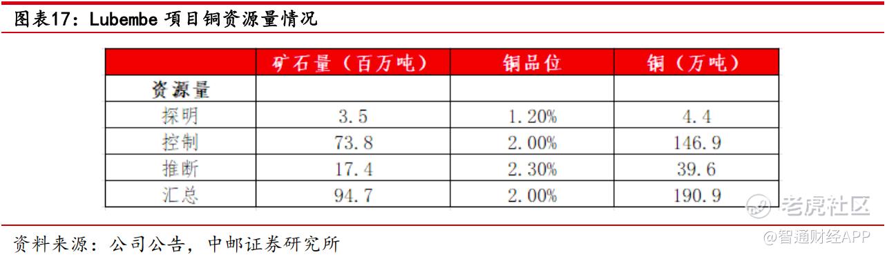 需要强调的是,金川国际自身同样看点十足。除已投产的Musonoi外,公司还坐拥Lubembe项目,该矿山共拥有铜资源量190.9万吨,铜品位为2%,其中铜的资源量达190万吨,是金川国际现有矿山中资源量最大的矿山。可预见的是,随着Musonoi产能释放,Lubembe的接力开发将为公司构筑起梯级开发的资源格局,保障未来长期成长性。