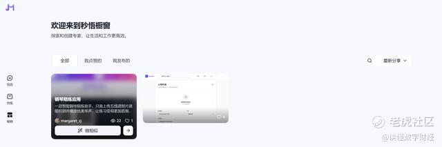 在第三大模块“橱窗”中,类似于一个秒悟版的“应用商店”,用户可以把自己创造的智能体应用展示在该页面。从其页面中,《读佳》推测该模块用于展示优秀应用,并且支持用户“做相似”,或主要用于促进产品的体验与推广。