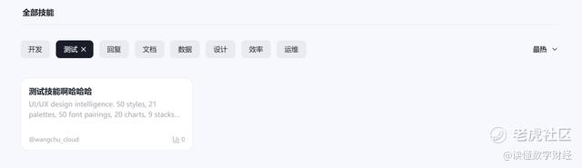 不过,《读佳》发现,在进入一些细分“技能”类型时,展现的技能为“测试技能啊哈哈哈”,这或许也说明该产品尚在早期,尚未成熟。