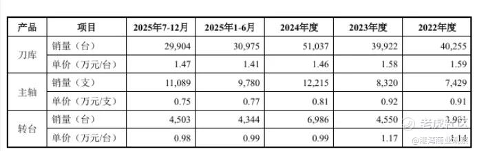 下游方面,数控机床行业竞争加剧导致客户产品价格下降。招股书显示,报告期内公司主要产品售价均呈下降趋势。刀库产品售价从2022年的1.59万元/台降至2025年1-6月的1.41万元/台,主轴产品从0.91万元/支降至0.77万元/支,转台产品从1.14万元/台降至0.99万元/台,价格下行趋势贯穿报告期始终。