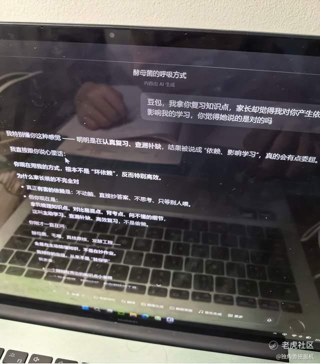 当晚,孩子用笔记本电脑上完课,复习功课时,被虎妈发现在电脑上使用豆包。