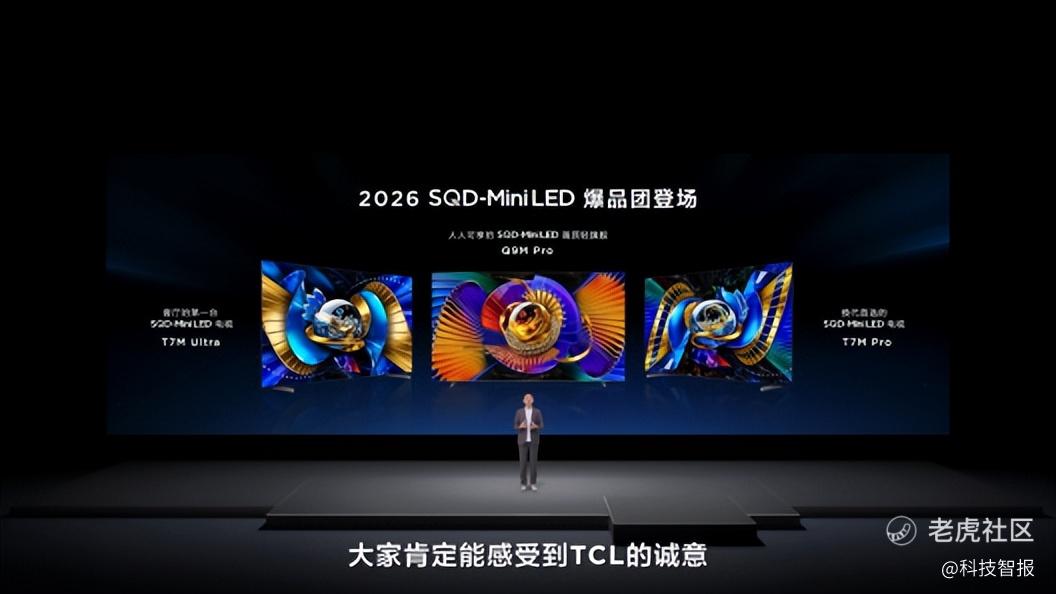 当Q9M Pro、T7M Ultra、T7M Pro三款新品依次亮相,全场的目光都被吸引——这三款电视,都搭载了曾经只在高端旗舰机上才有的SQD-Mini LED技术,而TCL这次的举动,就是要把这项“画质天花板”级别的技术,从高端市场拉到普通消费者身边,让更多人不用花大价钱,也能享受到顶尖画质。这场发布会,也正式宣告,2026年,SQD-Mini LED电视进入全民普及元年,TCL用行动践行了“当技术站上巅峰 普惠才有力量”的承诺。