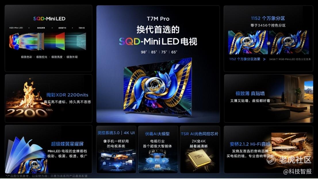 还有T7M Pro,作为电视换代的首选,它在主流价位率先用上SQD-Mini LED技术,画质全面超越同级产品,再加上升级的音响和智能系统,堪称闭眼入的选择。