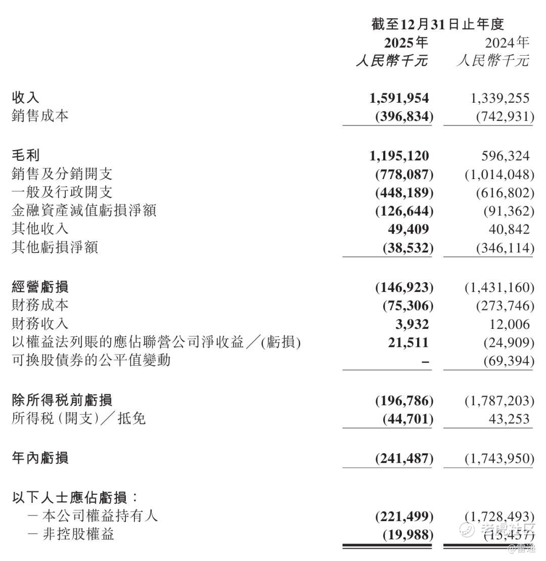 微盟集团2025年毛利为11.95亿元,较上年同期的5.96亿元增长100.4%。