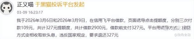 2025年11月,信用飞高调开展“打击金融黑灰产”活动,并于今年1月发布了阶段性战报。然而,平台自身营销乱象不断,高息和暴力催收问题依然突出。在被监管部门“请喝茶”之后,信用飞的合规漏洞能否真正被堵上?在利率改革持续深化、24%红线严格落地后,能否从这场行业洗牌中突围成功?