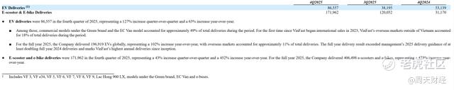2025年全年,VinFast全球交付196,919辆汽车。在越南市场共交付175,099辆,同比增长101.3%,占越南汽车总销量近三分之一。