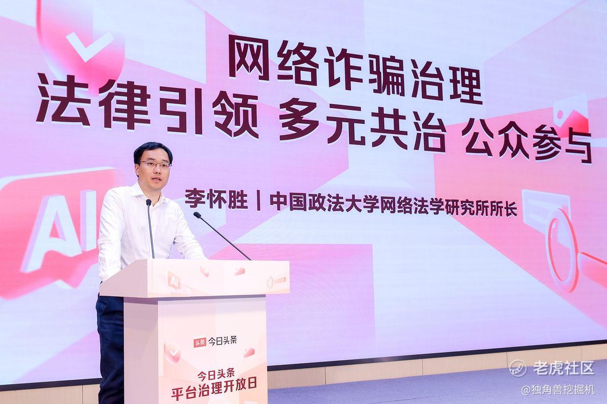 中国政法大学网络法学研究所所长李怀胜在现场指出,网络诈骗已形成系统化犯罪链条,治理需坚持法律引领、多元共治、公众参与。其中,提高公众参与度是反诈的重要一环。“今日头条的平台治理报告中有两组数据值得深思:一是平台通过私信对高危风险进行了300余万条提醒,二是部分用户对反诈提示存在抵触情绪。这两组数据恰恰说明,没有公众的主动参与,再严密的技术防线、再完善的法律制度都可能被突破。”李怀胜表示。