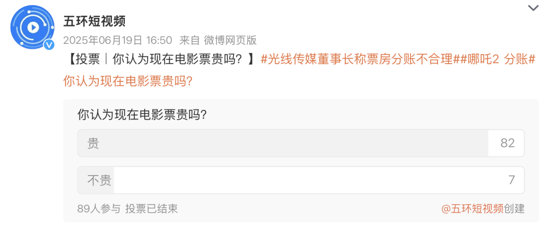 与此同时,另一个有趣的现象是,结合社交平台上的种种投票、讨论来看,大众用户并未真切感知到电影票的降价现象,票价贵才更符合多数人的体感或者说印象。