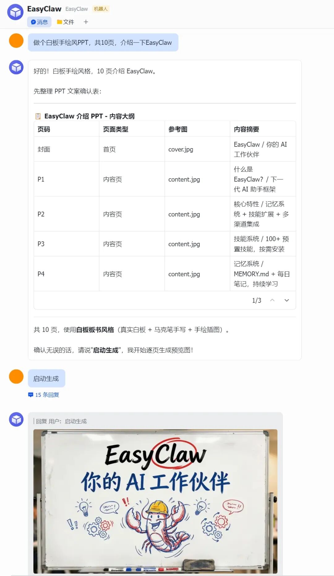 PPT、漫画、文本润色——这三样,以前要找设计、找外包、等三天。现在跟龙虾说一句话,几分钟出来。