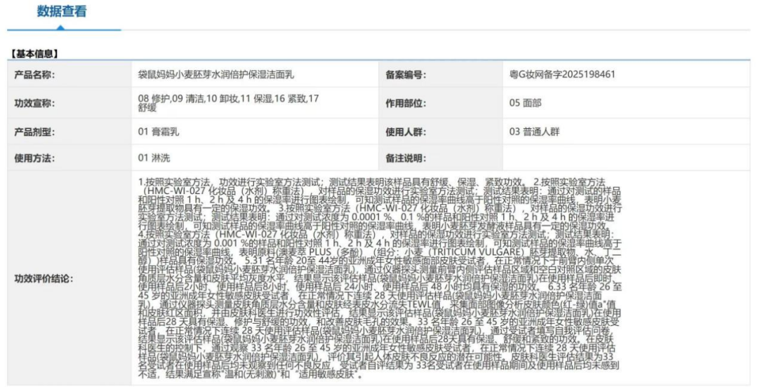 在国家药监局国产特殊化妆品注册信息中输入“袋鼠妈妈”以及“广东袋鼠妈妈集团有限公司”查询发现,没有任何国产特殊化妆品注册信息,输入旧名称广州天然国度生物科技有限公司,有34个国产特殊化妆品注册信息,其中有5个为已批准信息,批准产品涉及的功效有保湿、防晒、舒缓等;其余29个信息状态为正在审批中,其中标注国家药品监督管理局未组织对本产品所称功效进行审核,本注册证不作为对产品所称功效的认可。且均未涉及“孕妇和哺乳期妇女适用”的宣传。