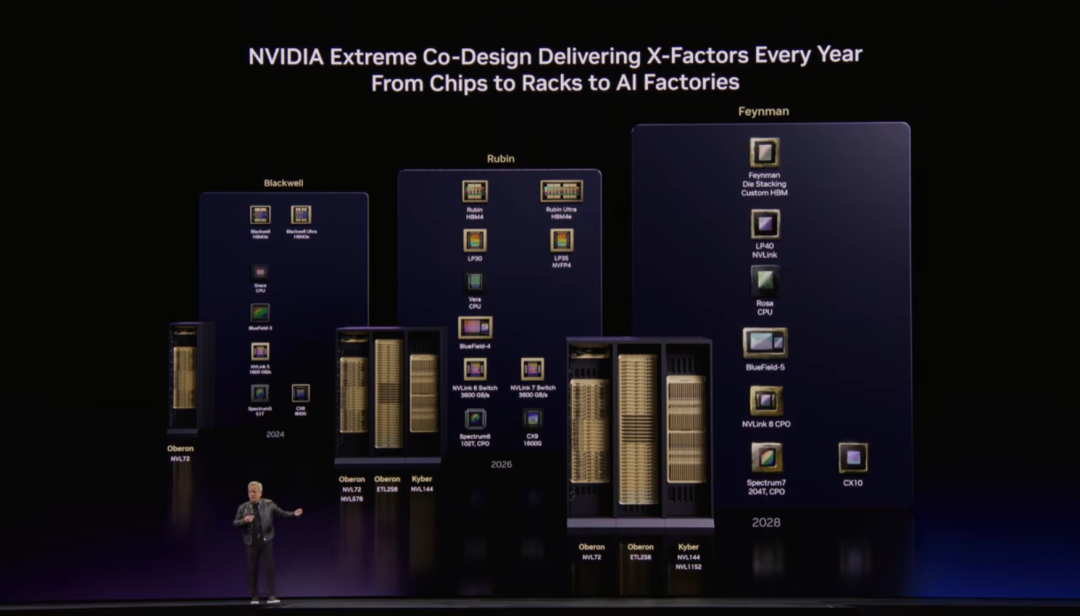 英伟达年更节奏锁定:Blackwell → Blackwell Ultra → Rubin → Rubin Ultra → Feynman(2028 年)