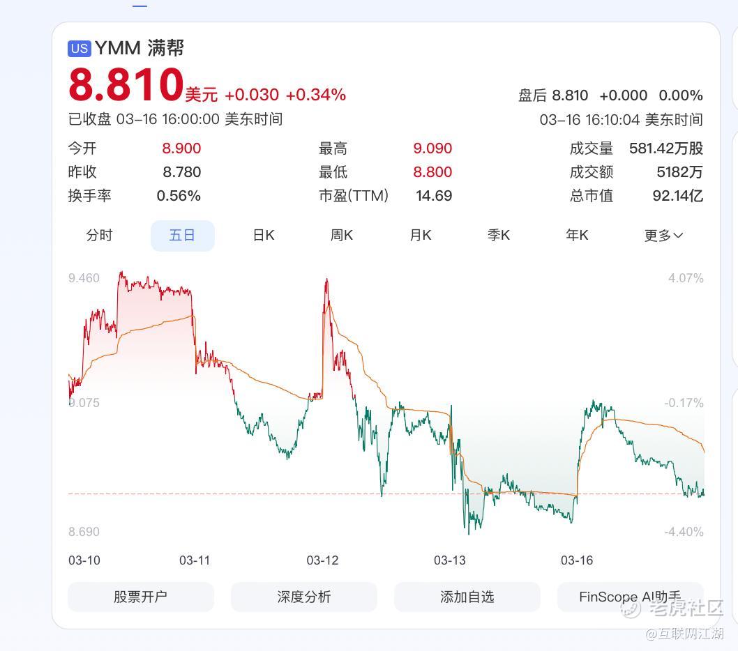 在财报发布后,市场对满帮的态度似乎仍有向下波动的趋势。