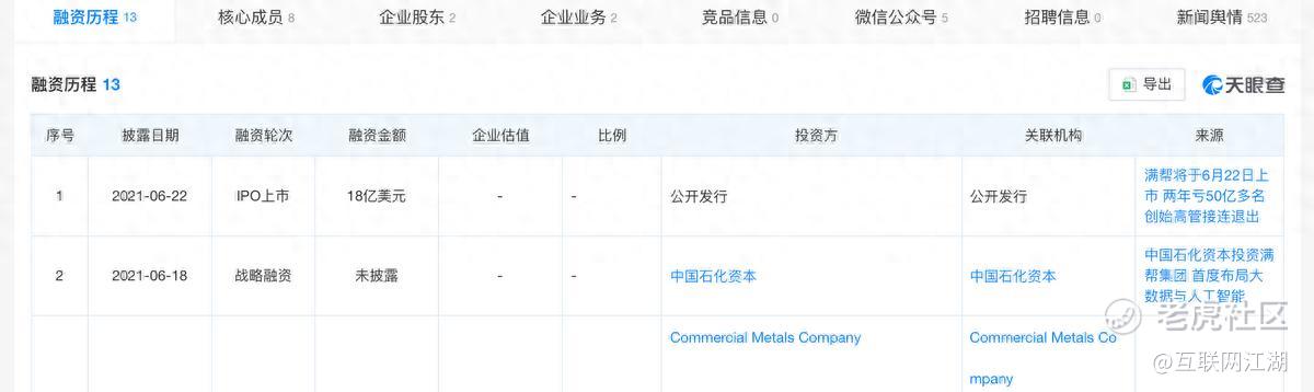 天眼查APP显示,2021年,满帮赴美上市,彼时获得融资18亿美元。