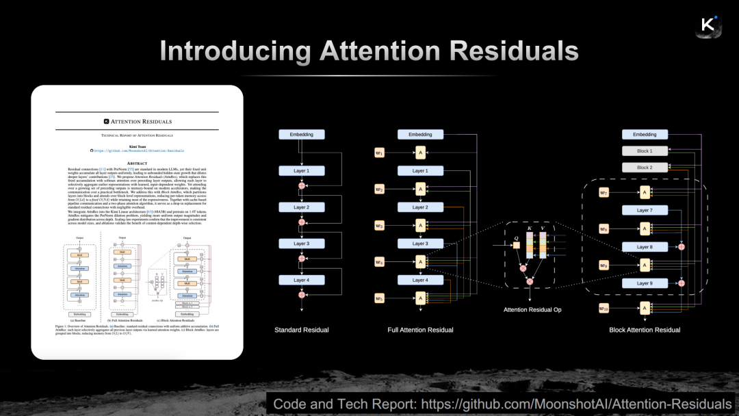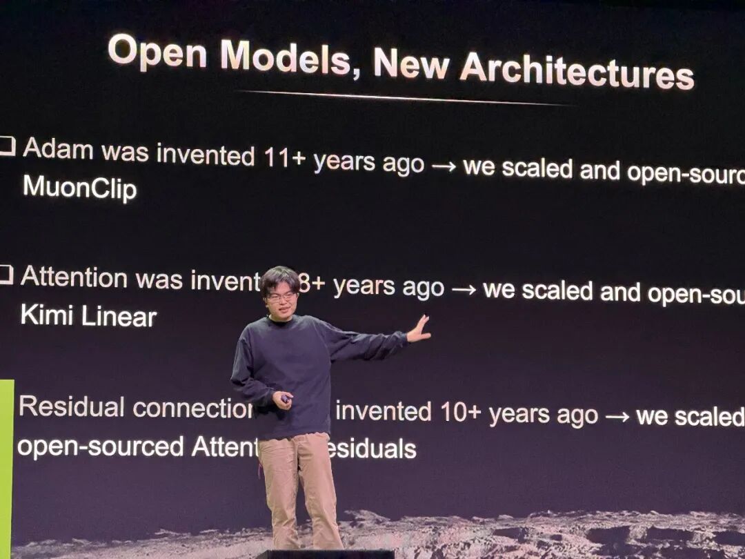 而杨植麟在GTC 2026的舞台上宣告,Kimi已经在这三个方向上完成了实质性的创新,并且将这些创新全部开源。