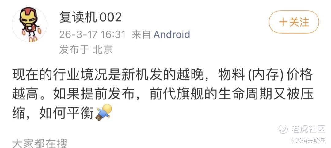 对于这种困境,有博主提出一个问题:现在的行业境况是新机发的越晚,物料(内存)价格越高。如果提前发布,前代旗舰的生命周期又被压缩,如何平衡?