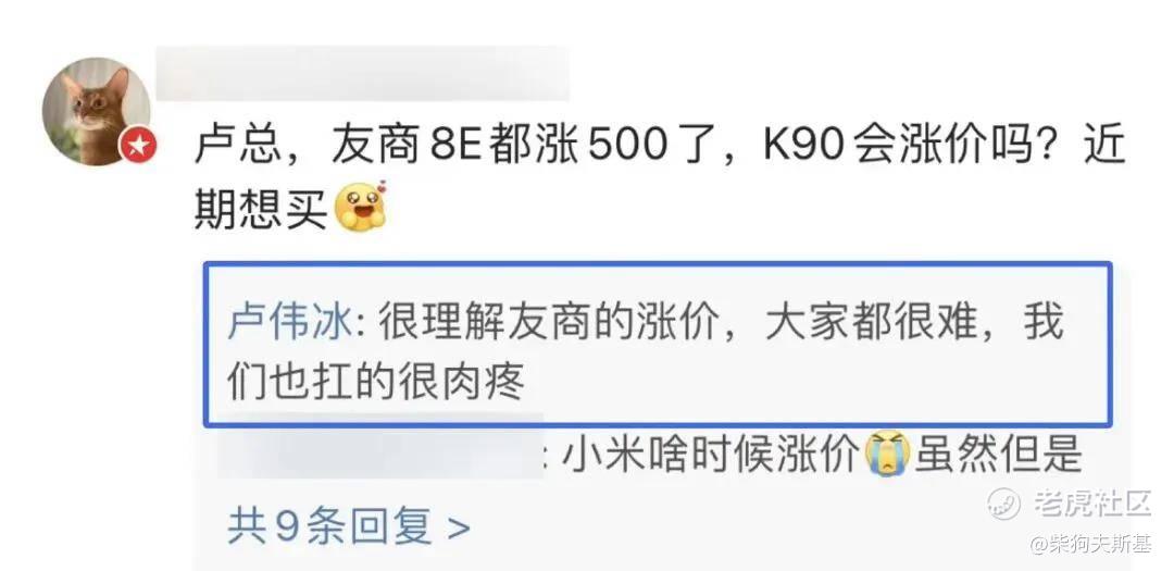 就比如卢伟冰表示,很理解友商的涨价,大家都很难,我们也扛的很肉疼……