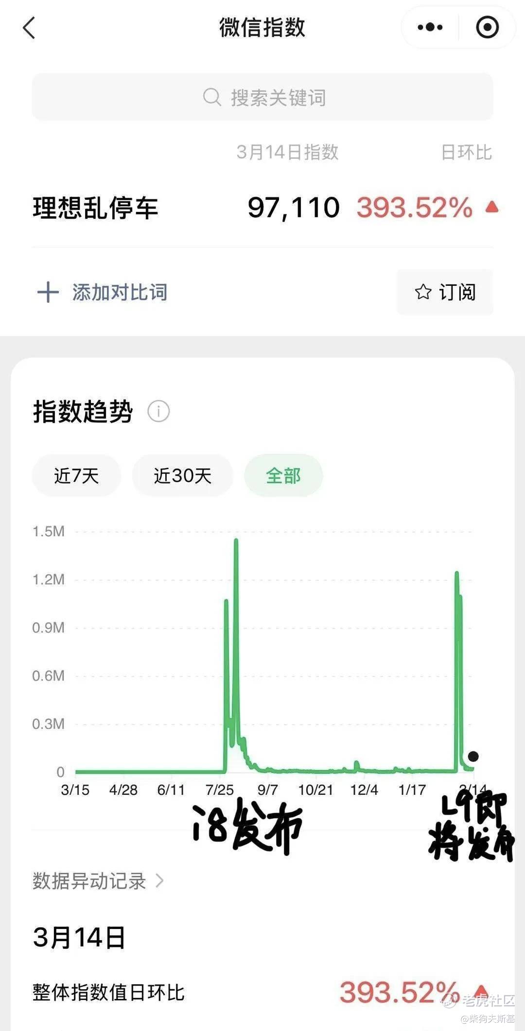 再到了近期,理想新一代L9即将发布,这个关键词的指数又一次坐上了火箭。