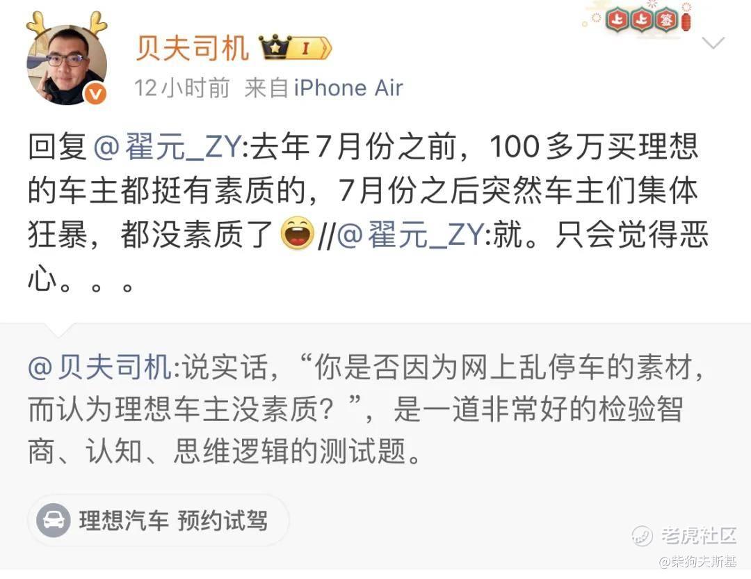 也有网友打趣称「去年7月份之前,100多万买理想的车主都挺有素质的,7月份之后突然车主们集体狂暴,都没素质了」