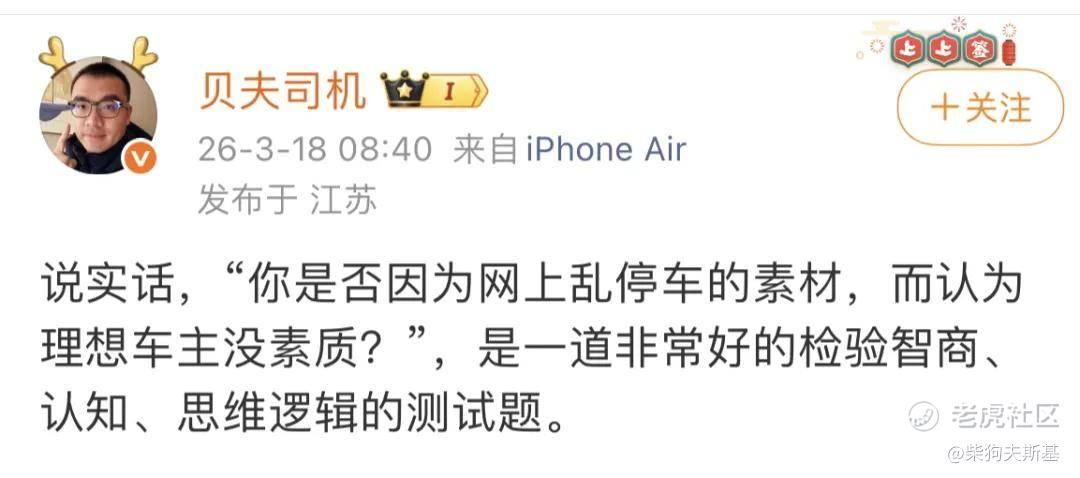 对此,理想前员工贝夫司机也表示,说实话,「你是否因为网上乱停车的素材,而认为理想车主没素质?」,是一道非常好的检验智商、认知、思维逻辑的测试题。