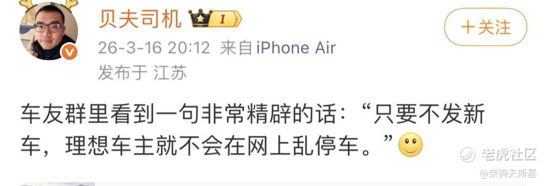 他表示:车友群里看到一句非常精辟的话:「只要不发新车,理想车主就不会在网上乱停车。」